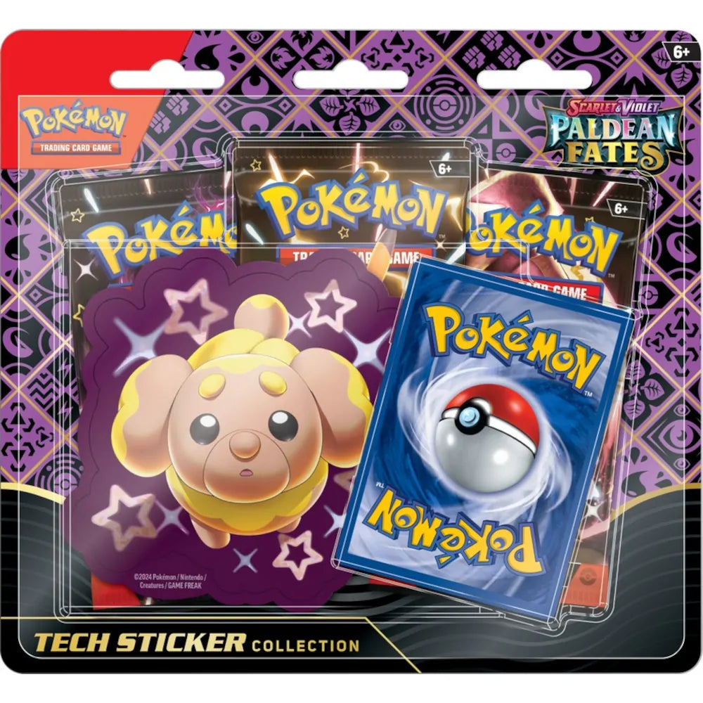 Pokémon Scarlet & Violet: Paldean Fates Tech Sticker CollectionA Shiny Pokemon to Stick by Your Side! Spruce up your tablet, laptop, or other tech device with a loyal and friendly Shiny Pokemon pal from the Paldea region! Inside this box, youll find a cool tech sticker and promo card featuring one of three Shiny Pokemon, plus booster packs from the special Scarlet & Violet-Paldean Fates expansion. |