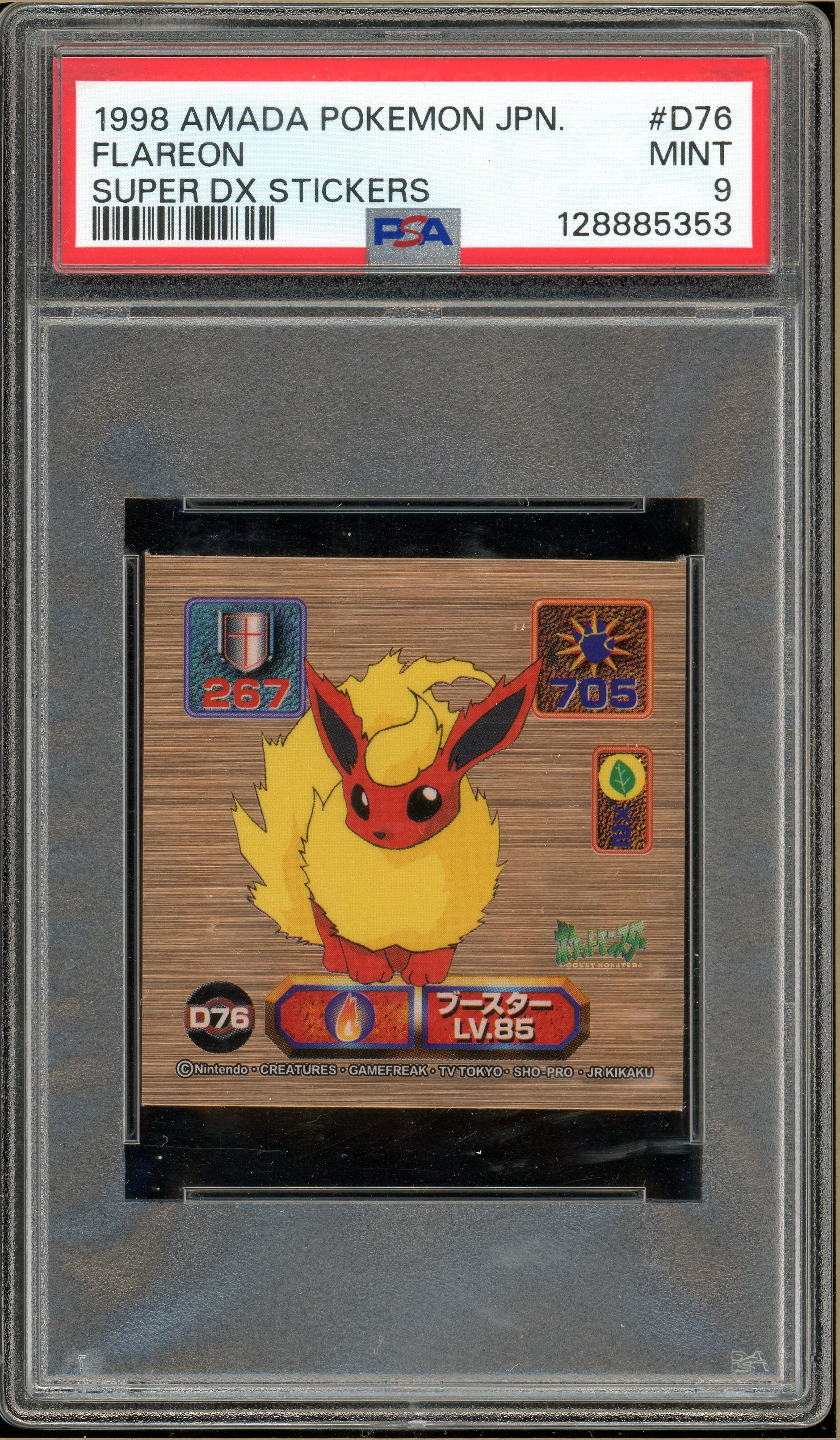 Pokémon - 1998 Amada Flareon Super DX Stickers #D76 PSA 9