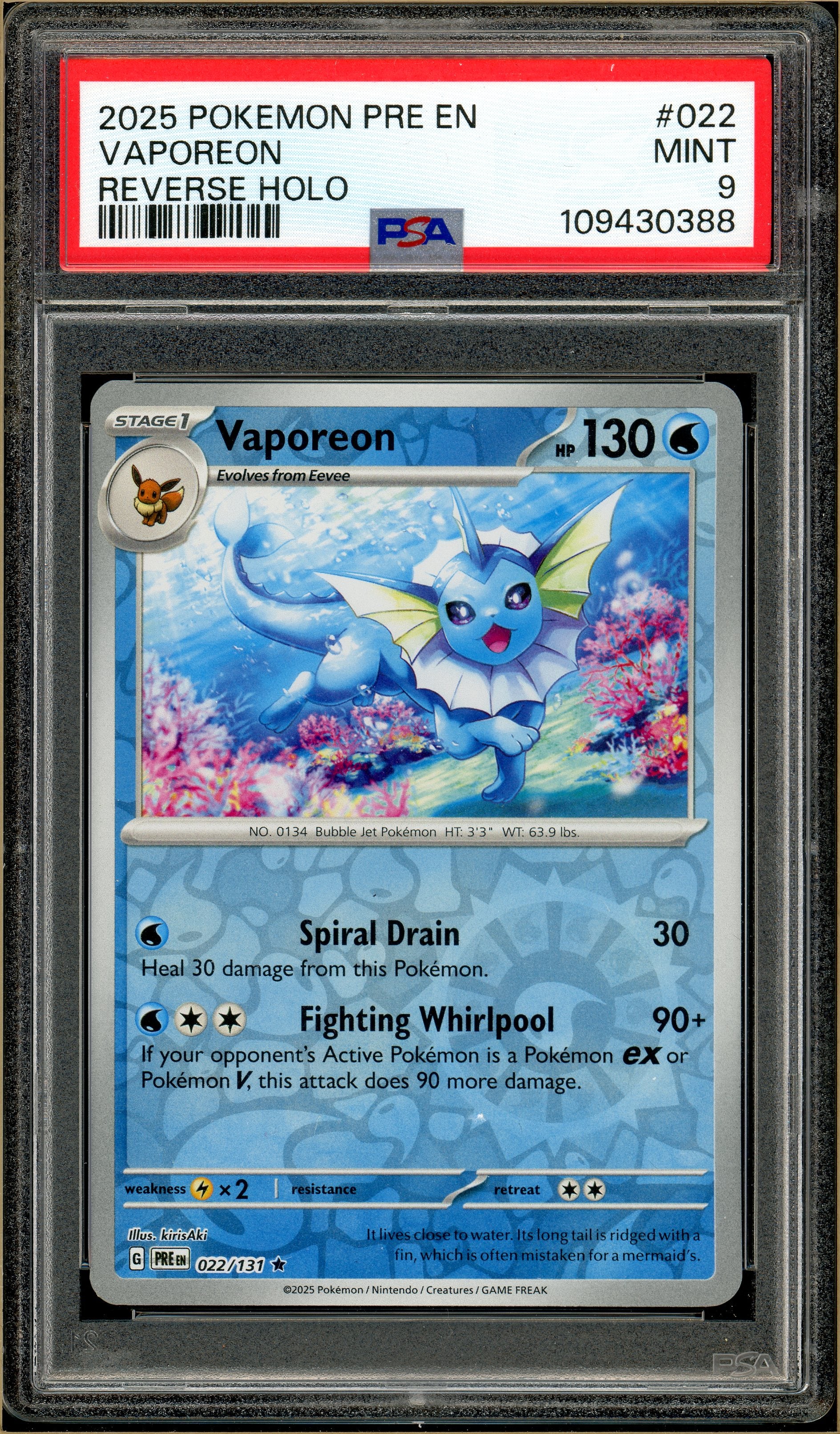 Pokémon - Vaporeon Reverse Holo Prismatic Evolutions #022 PSA 9